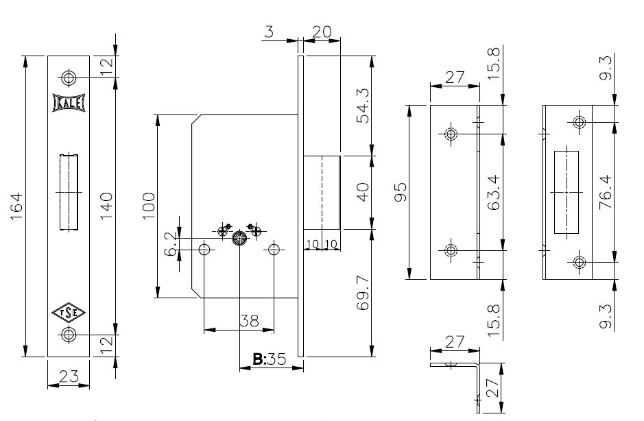 Замок врезной Kale-kilit 157 F02
